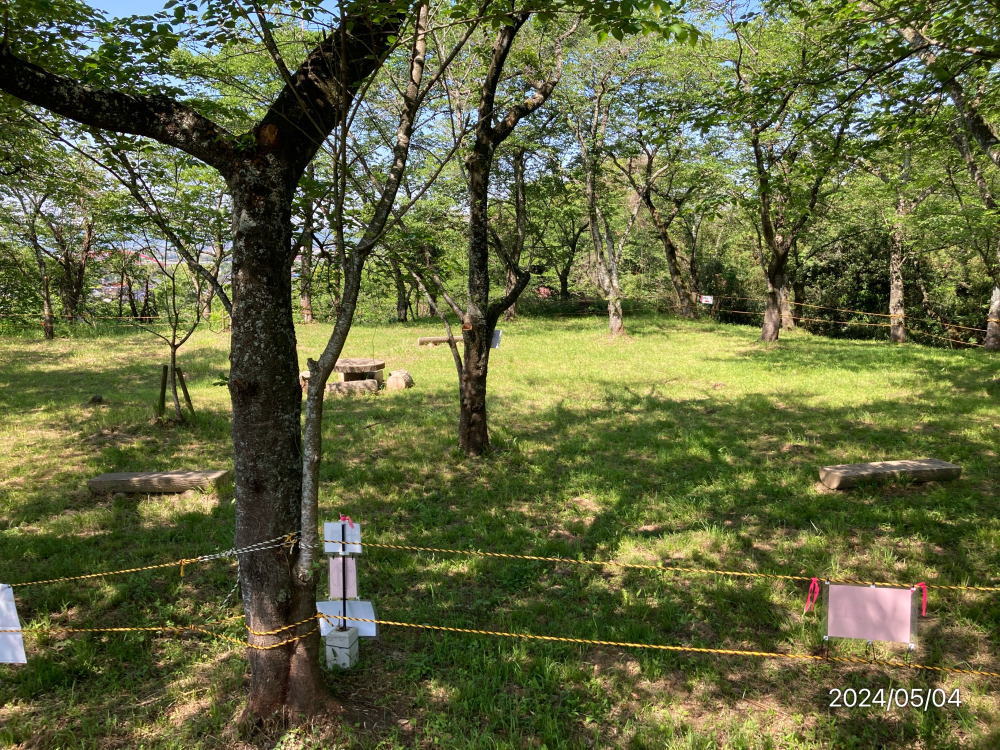 南北約400m、東西約300mの範囲に広がる城域には、当時の情景を覗わせる堀や土塁が良好な状態で残っています。城内には北側から二の丸、本丸、中の丸、天神丸、背後に越ノ前郭、南大首郭など9つの郭が配置されています。また、発掘調査によって石垣や石塁が発見され、土塁の城から石垣の城への様相の移り変わりと、城主の変遷が考古学的な手法によって明らかになったことが評価され、令和5年度(2023年)に国の史跡に指定されました。