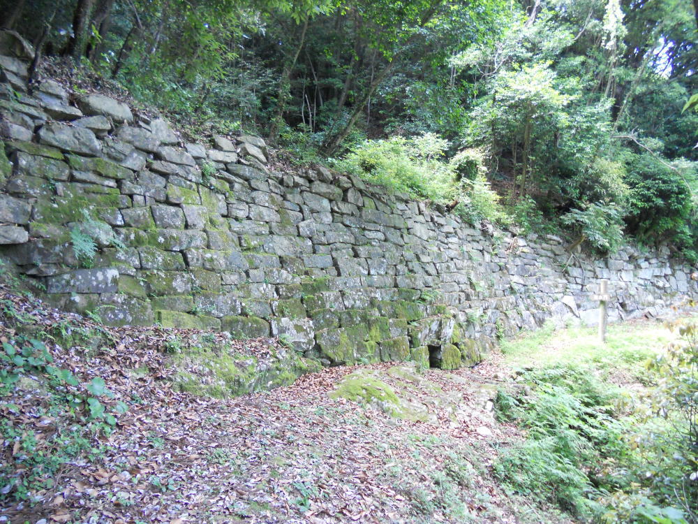列石線が谷間を横切る場所には高い石垣壁を築き、その中央の下部に水門を設け、北水門、東水門、南水門、西水門が発見されている。(水門の奥行き10.6~20m)城門は、表門と裏門にあたると見られる遺構が発見され、第一門跡(北門)には『沓(くつ)石』と呼ばれる2個の門扉の柱礎石が遺っている。