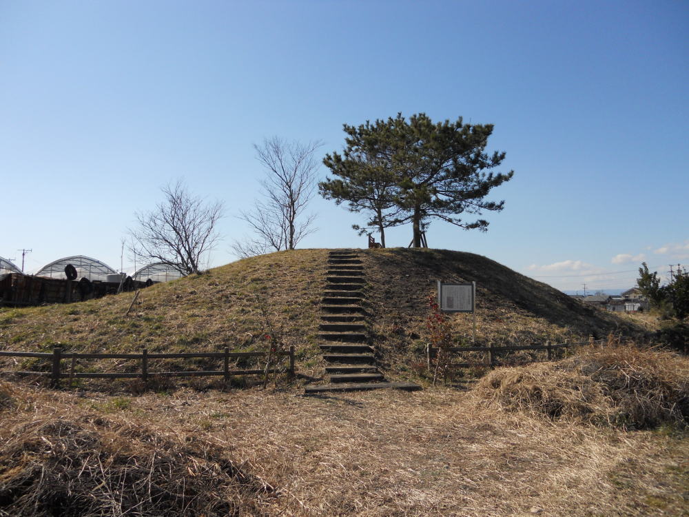 ここに残る指定地は俗に天守山と呼ばれ、付近から金箔をおした古瓦片などが出土しており、本丸天守の跡と考えられる。<現地案内図より>