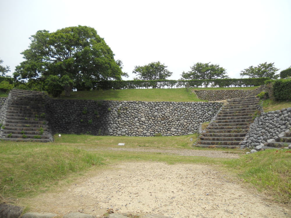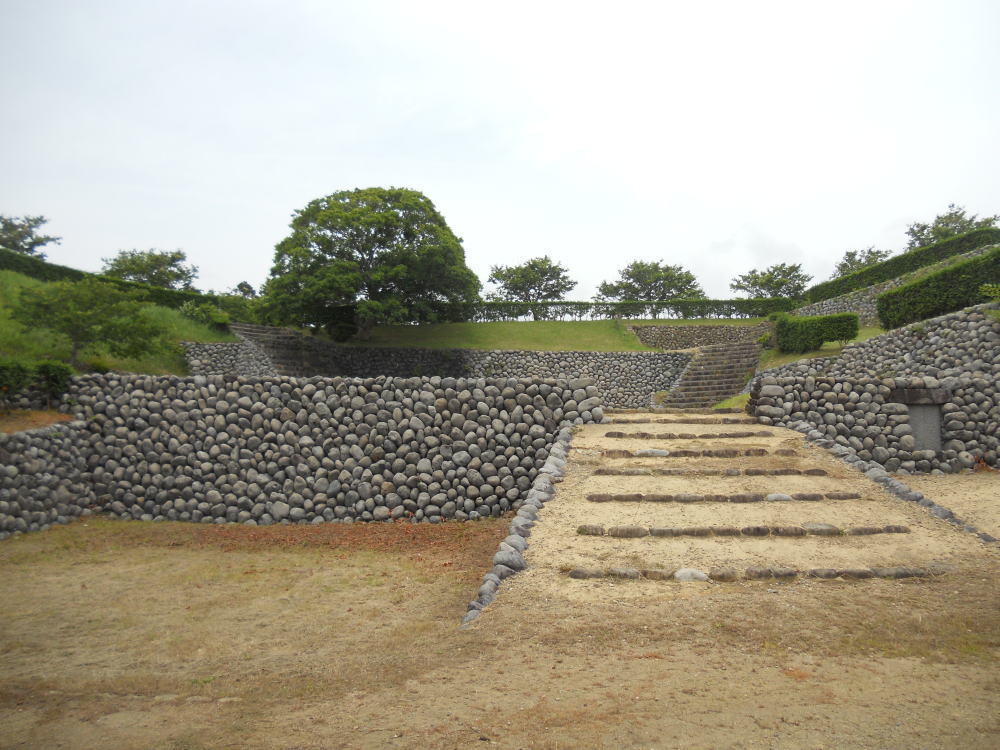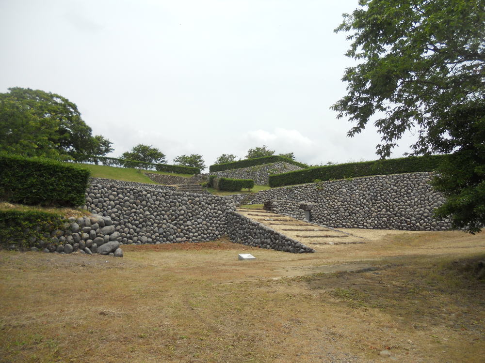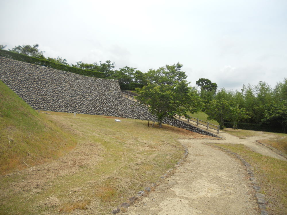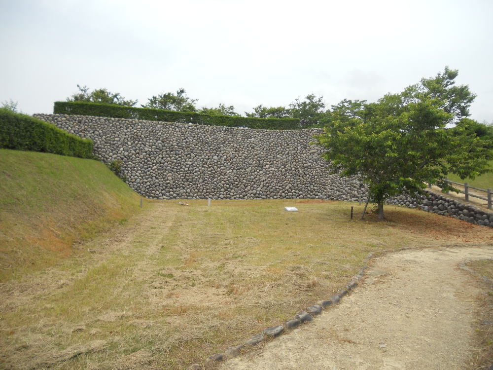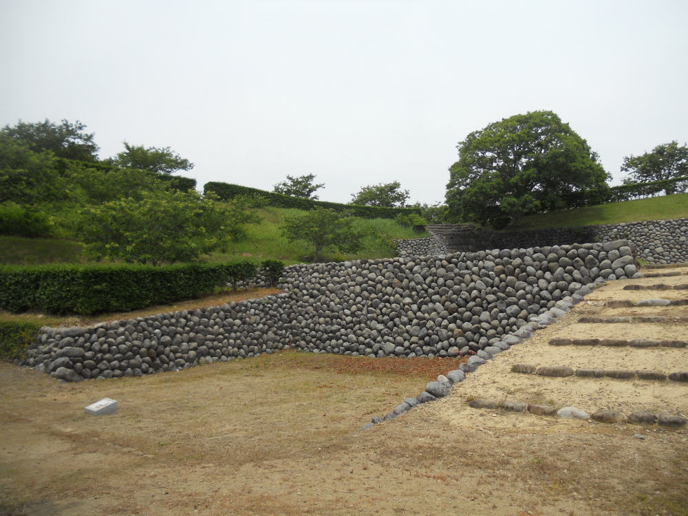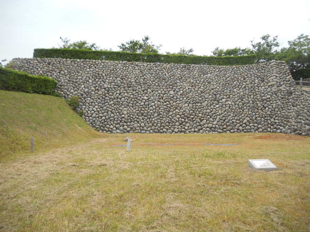 また、普通1つしかない大手門が、この横須賀城には東西にあり「両頭の城」と云われたほか、「玉石積み」と呼ばれる丸い河原石を用いた石垣も、特徴としてあげられます。<現地案内板より>