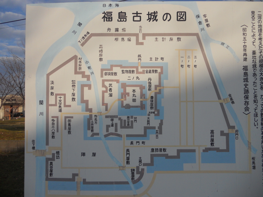 福島城は、慶長12年(1607)に完成され、同19年に廃城となった。僅か7年間の存在でしかなかったが、室町時代から江戸時代に移る当時の築城形式を示す典型的な大城郭である。その間に城主は掘忠俊・松平忠輝の2代にわたったが、何れも一国一城の越後太守であった。