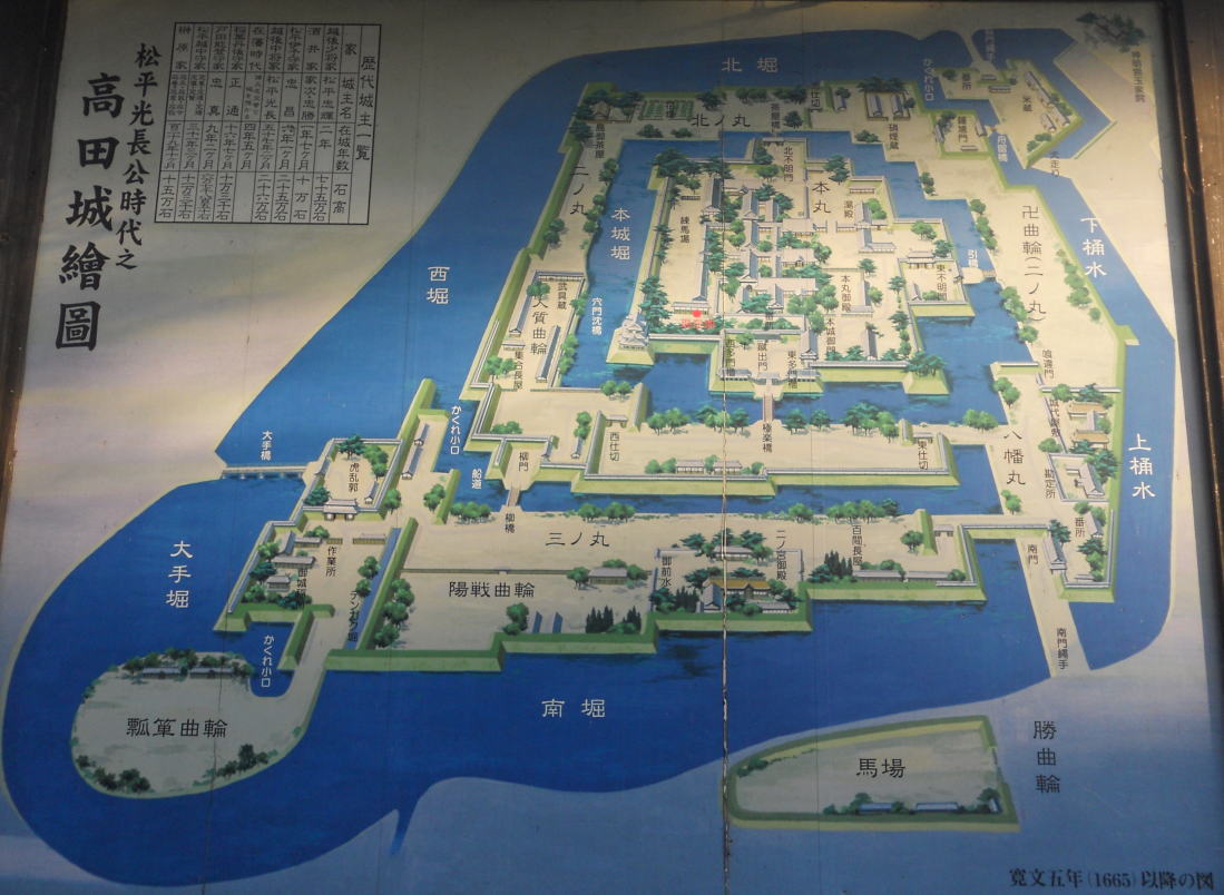 高田城は慶長19年(1614)に徳川家康の六男・松平忠輝の居城として天下普請によって築かれた。縄張りは忠輝の舅・伊達政宗が担当した。