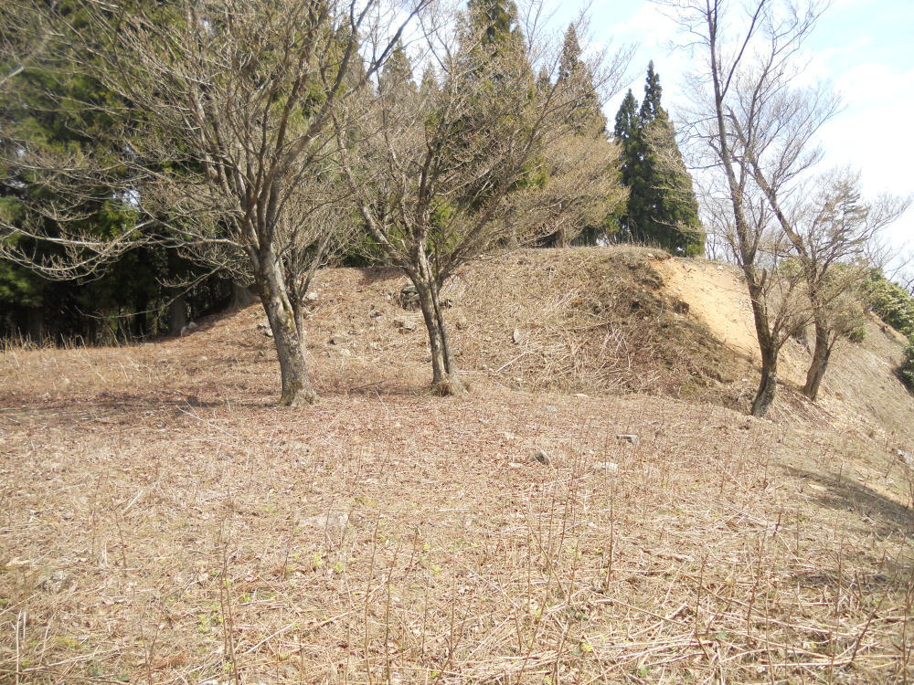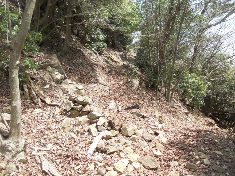 標高601mの山頂には36m四方の主郭(本丸)を中心に、西方の但馬街道に向けて、大規模な二の曲輪、三の曲輪が続き、尾根の要所には多数の別郭や堀切を構築して、赤松軍の攻撃に備えており、中世山城の典型的な遺構を見ることができます。