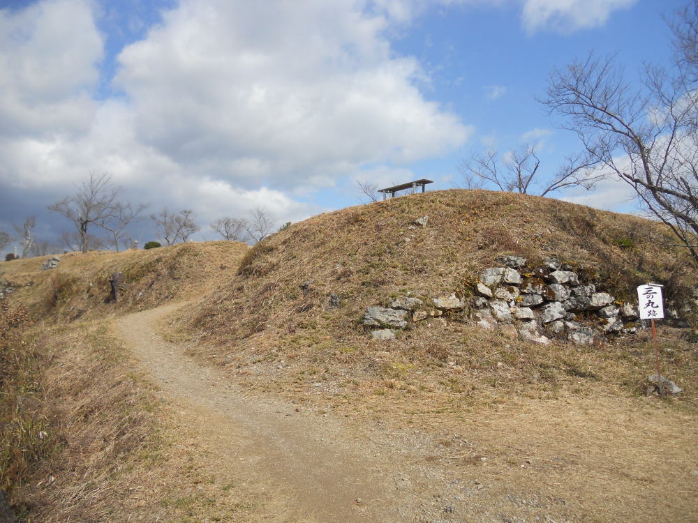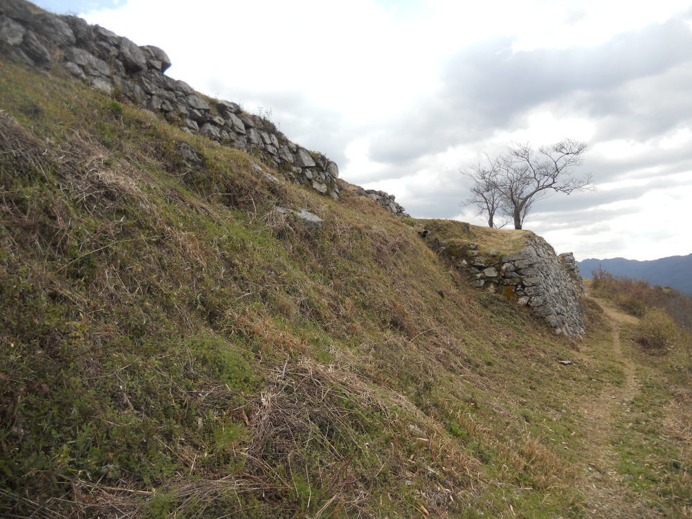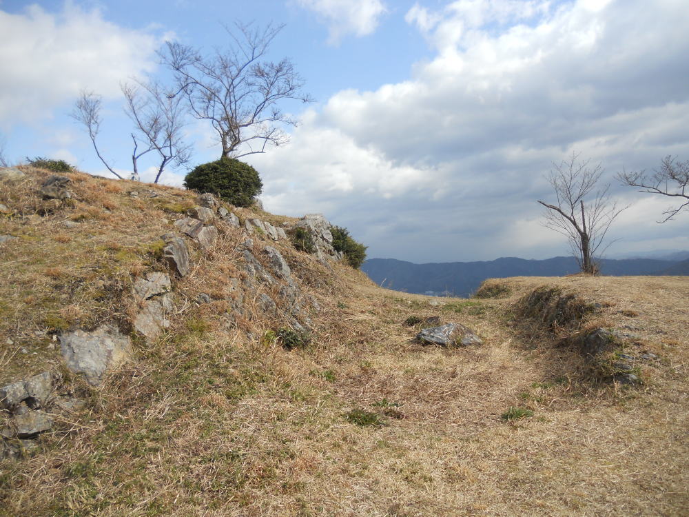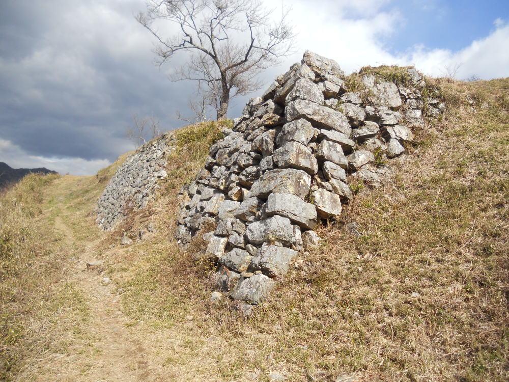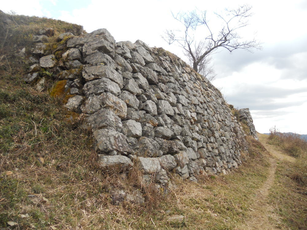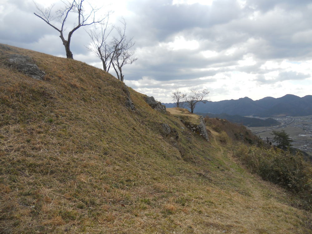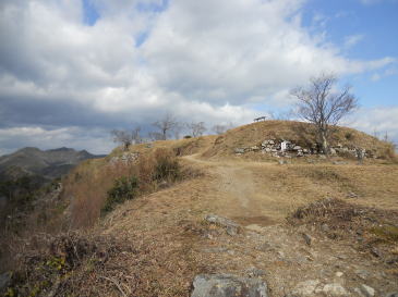 有子山城と比較し、比高も80m低いので、楽勝かと思ってましたが…健脚コースと呼ばれるルートはかなりハードでした。残り300mの看板手前でクタクタでしたので、途中休憩がてら登山道を右手へ折れ太鼓の段へ。