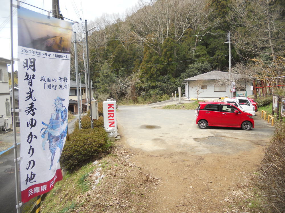 城下には、明智光秀が陣城とした茶臼山遺跡、水色の桔梗の旗を靡かせた「幟立て」、軍兵が勢揃いした「太刀野」などの地名が残り、明智勢黒井城攻めの名残りを留めています。<現地案内板より 一部加筆>