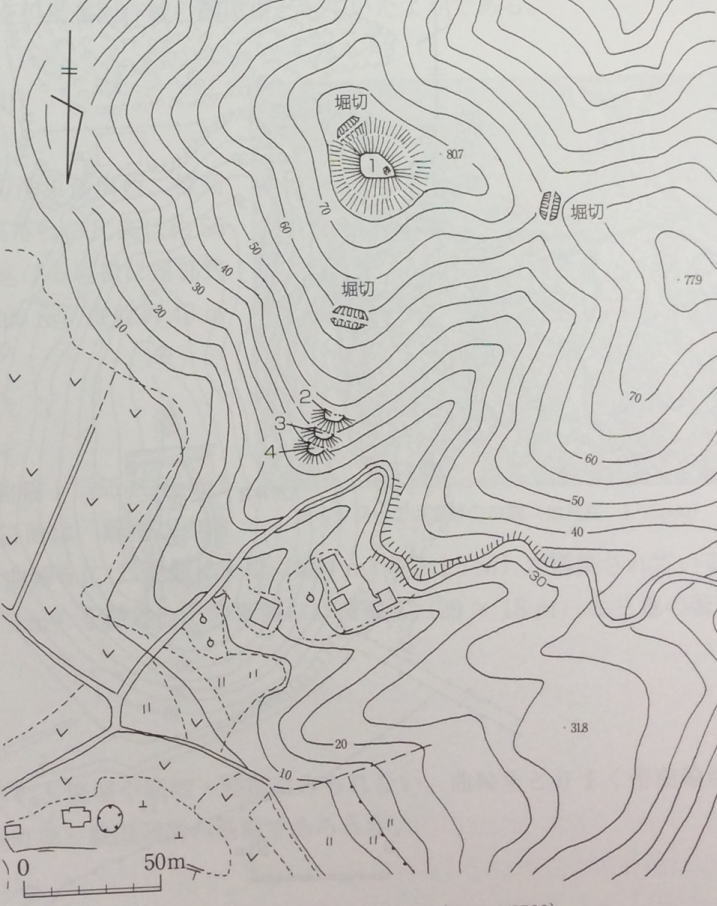 城は堀切も小さく、段差も低く、曲輪の連続性もないので、南北朝期に築城されたものであろう。
