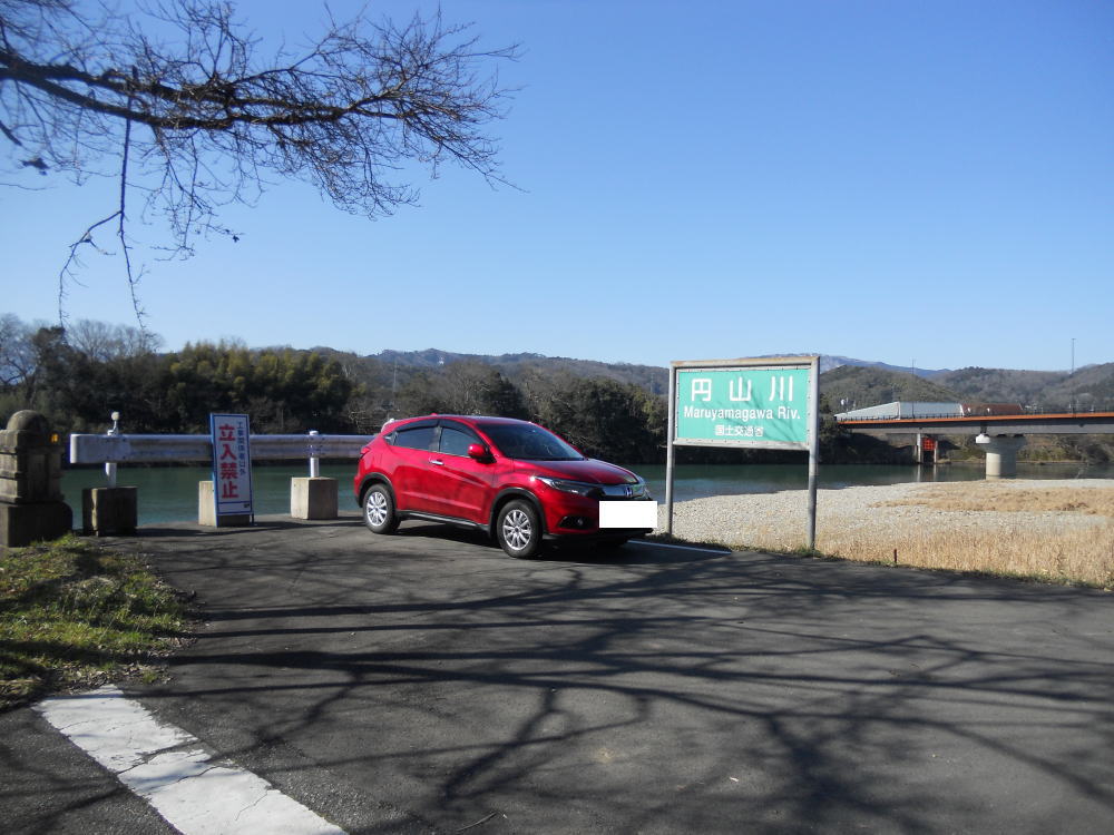 旧鶴岡橋 車を停め、井田神社を右