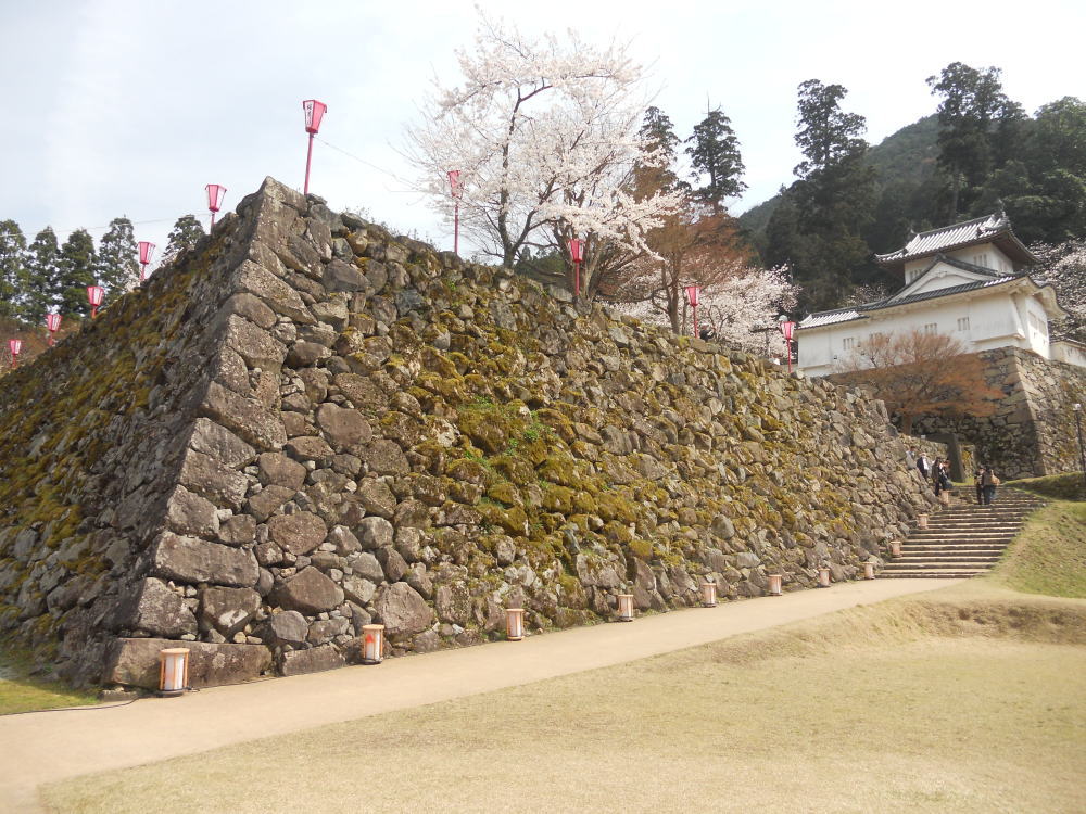平山城に分類され梯郭式と云われるように有子山の麓に上から稲荷郭、本丸、二の丸、二の丸下の郭三の丸と梯子を立てかけた様に城を築いています。また東には山里郭を設けて有事に備え、三の丸周囲には山から堀切で水を引き、内堀を廻らせ北に大手門、東西にもそれぞれ東門、西門を設け天守閣は築きませんでしたが、隅櫓や多門を設けて要害としました。
