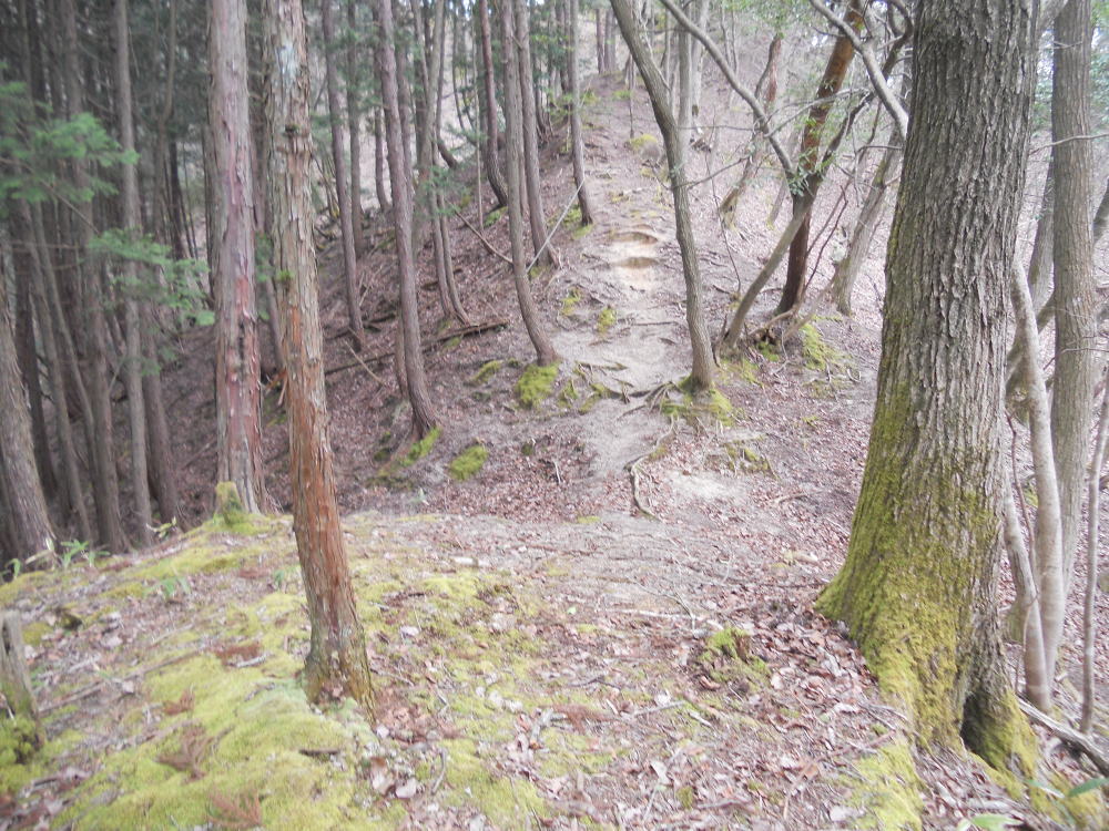 今回はいずし古代学習館からのルートで、途中西曲輪に立ち寄り主郭まで行きました。麓から登城開始すると主郭まで500mと看板がありますが、なかなかの急傾斜です。道中、説明板があり退屈しませんし、
