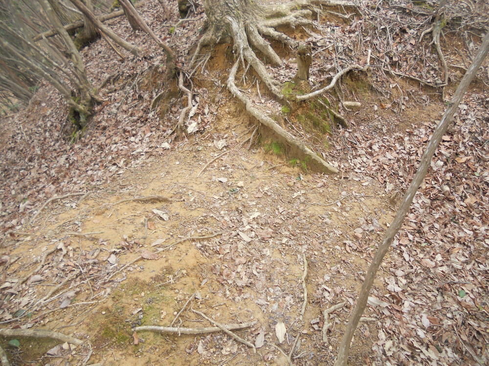 | 1、位置と城史 中村城は円山川支流の出石川と奥山川に挟まれた、標高220mの山上に位置している。中村集落との比高は約200mを測る。城域は広く、東西約80m・南北約800mを測る。 地元では、中村城の所在する山を「七年山」と呼んでいる。「七年山城」の由来は、天正2年(1574)の有子山城築城から7年間、有子山城と運命を共にしたからであるという。有子山城は天正8年4月初め、羽柴秀長の第2次但馬攻めで落城した。 2、城の構造 中村城は、標高220m地点を主郭とする「南城」(下の城)と標高134m地点を中心とする「北城」(上の城)の2つの城で構成される。 [南城](上の城) 最高所の標高220mに位置する主郭1は、東西25m、南北46mを測る大規模な曲輪である。主郭1の周囲には、曲輪2(22×12m)・曲輪4(15×8m)・曲輪5(11×6m)から成る帯曲輪を巡らせている。曲輪3は21×9m、曲輪6は20×12m、東斜面の曲輪7は幅4〜5mを測る。 特に強固な防禦を誇っているのは主郭の北側である。曲輪8(13×12m)・曲輪9(9.6×8m)から土塁をもつ曲輪4に入るには、横堀(幅3m・深さ2m)の西側に構築された土橋を通り、さらに一折れして土塁間の坂虎口を通らなければならない。しかも土橋・横堀の東西には、竪掘ア(幅2.5m、長さ16m)・竪掘イ(幅2.5m、長さ22m)で斜面を遮断している。曲輪4と曲輪8との段差は約7mを測る。北方からの攻撃に対し、主郭1の防禦強化を図った縄張である。 曲輪10は東西20m・南北70mを測る大規模な曲輪であり、幅4〜7mの帯曲輪が取り巻いている。曲輪10と曲輪11の間には、大規模な土橋・竪掘が構築されている。竪堀ウは幅7〜8m・長さ100m以上、竪掘エは幅7m・長さ30mを測る。 曲輪11は東西25m・南北25mを測り、曲輪の影は明らかに横矢掛かりを意識した造りとなっている。曲輪11の東側は折れをもつ土塁と横堀(幅3.5m)、西側は竪掘オ(幅4.5m・長さ22m)で防禦しようとしている。また曲輪11の背後(南側)には、少し離れて土塁・竪掘を構築して尾根筋の攻撃に備えている。竪掘カは幅3.5m・長さ27.5m、竪掘キは幅3.5m〜4m・長さ38mを測る。 曲輪9の北側には、曲輪12(10×10m)に二重の帯曲輪を巡らせ、更に2方向に小曲輪郡を構築している。 [北城](下の城) 北城は尾根を二重の土橋・竪堀で遮断し、その北側に3段の小曲輪と細長い2つの曲輪を設けている。低い土塁をもつ曲輪1は14×16m、曲輪2は9×8m、曲輪3は6×8mを測る。竪掘ア・イは幅3m・長さ15〜20m、竪掘ウ・エは幅3m・長さ13×15mを測る。 曲輪4は13×62m、曲輪5は16.5m×40mを測り、曲輪5は帯曲輪・小曲輪郡と2条の竪掘で守備されている。竪掘オは幅2.5m・長さ20m、竪掘カは幅3.5m・長さ40mを測る。 3、まとめ 中村城は、小規模曲輪群の存在から南北朝期に築城起源を有し、戦国期に南城の曲輪(1・10・11など)を中心に曲輪の拡張と帯曲輪によって改修されたものと思われる。その時北城の曲輪拡張(曲輪4・5)も行われた。更に戦国末期には、南北両城とも竪堀、土橋・竪堀による改修を行っている。しかし、土橋・横堀・土塁をもつ坂虎口は天正8年以降織豊勢力(有子山城主)の改修ではなかろうか。 何れにしても、中村城はその規模も大きく、出石川を挟んで有子山城と対をなす城郭で、出石の防禦の要となる山名氏の拠点城郭と考えることができる。<豊岡市の城郭集成Uより> |