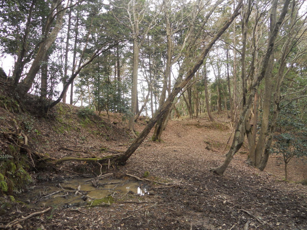 - 郭、土塁、竪堀、堀切、井戸
