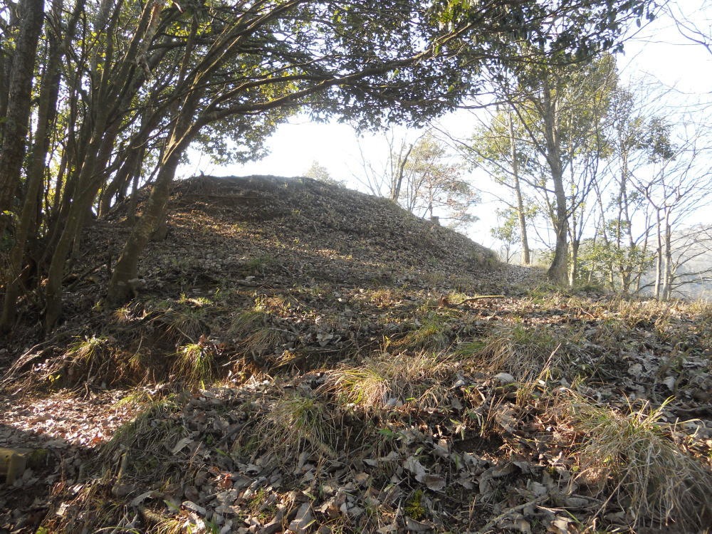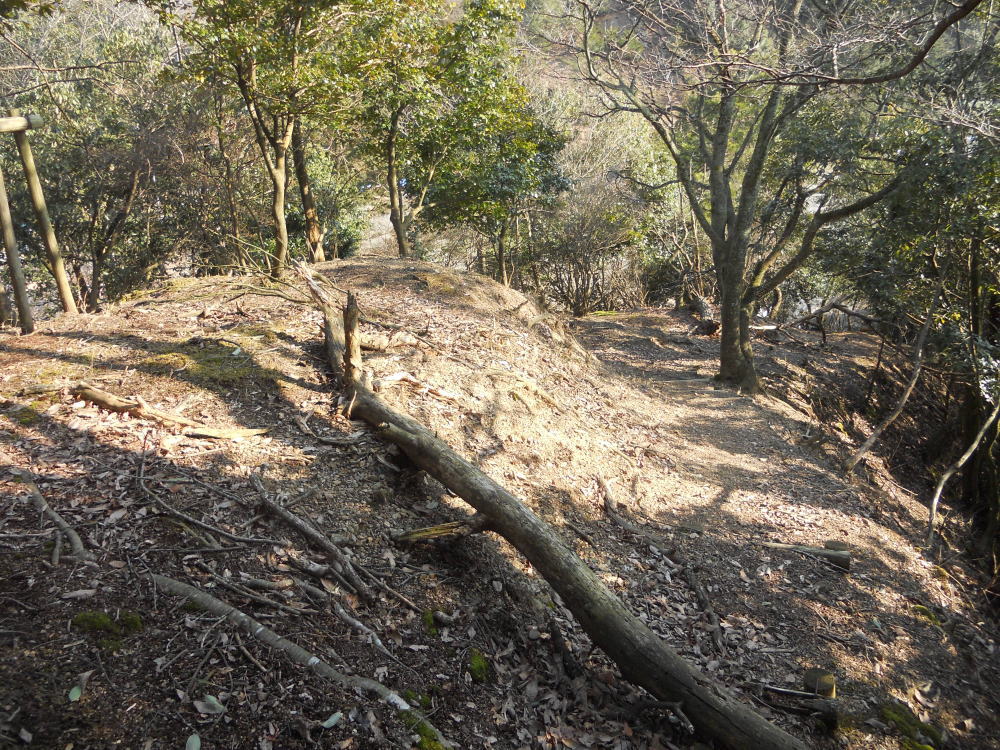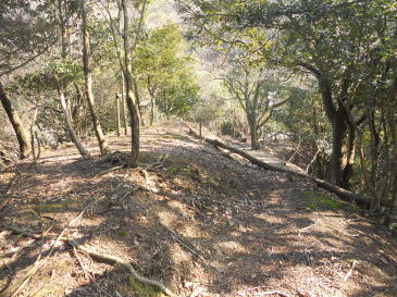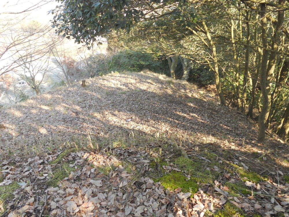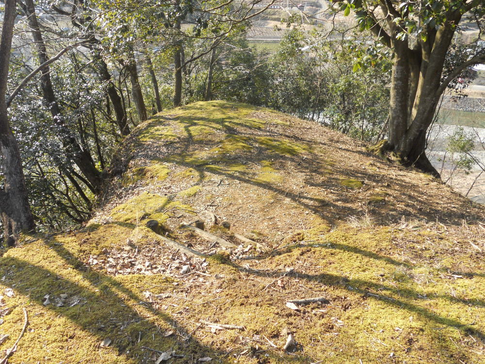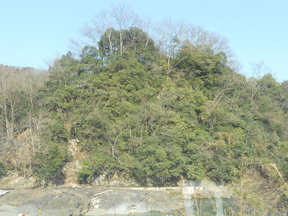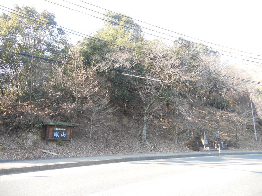 田和城は大屋川右岸、田和集落の北西、大屋川が大きく蛇行して形成した「田和の淵」に突き出た細尾根の突端、標高174mに所在する。田和集落との比高は約35mしかない低い丘陵を利用している。城域は東西約25m・南北約120mを測る小規模城郭である。道路に面して「城山公園」の看板があがっている。