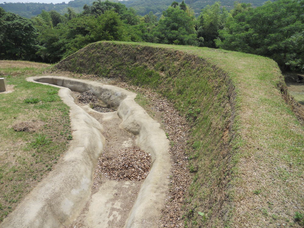 戦国時代(15世紀後半から16世紀後半)を中心に日本列島に数多く造られた中世城は、自然地形を出来る限り活かし、重要場所や守りが弱い場所に堀や土塁などを造って敵の侵入を防いでいました。熊本城のように石垣を備える近世城は『石造りの城』と呼ばれるのに対し、中世城は『土つくりの城』と呼ばれる理由となっています。また、『曲輪』と呼ばれる堀や柵で防御された広場には、天守閣のような立派な建物はなく、瓦さえも使わない掘立柱建物が建てられるのが普通で、中世宇土城も例外ではありませんでした。