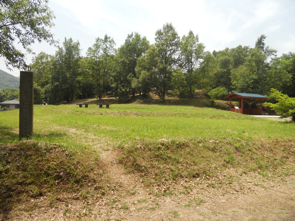 西岡台の南側斜面は、幅広い平坦地が連続しており、『オオテ』(大手)と伝えられる地点や麓には中世以来の古道『三角道』があります。この周辺に、領主(殿様)や家臣が生活していたと考えられます。<現地案内板より>