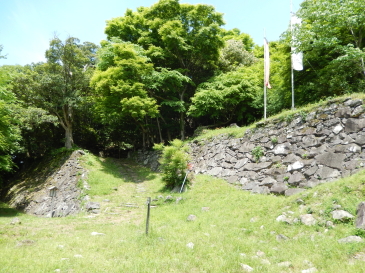 道中、巨石がゴロゴロしていて、在りし日のこのお城の権威を感じることは出来たので、それはそれでよしとしますが…角牟礼神社を本丸とカン違いして、山頂の本丸を逃したのは心残りですが、知恵をつけて再度訪れたい魅力的なお城でした。その頃には整備中(?)の三ノ丸駐車場付近の石垣も復元されているのでしょうか…