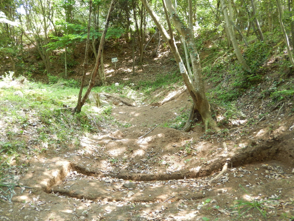- 曲輪、石垣、土塁、井戸、竪堀